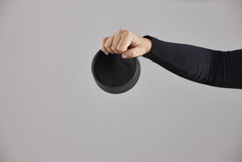 A Saudi woman Holding a Camera on a Yellow Background wearing Brown Abaya with Hijab