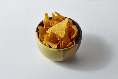 وجبات خفيفة من الناتشوز على خلفية بيضاء