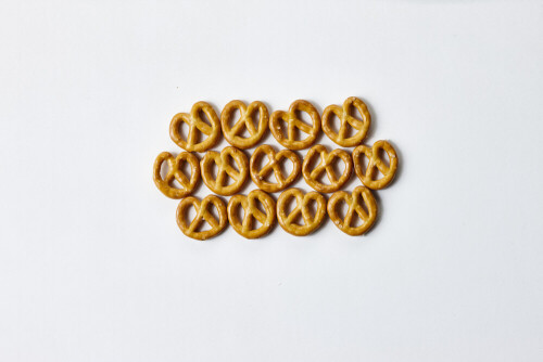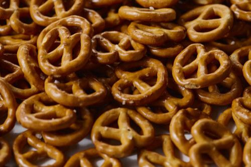 وجبات خفيفة من البريتزل على خلفية بيضاء