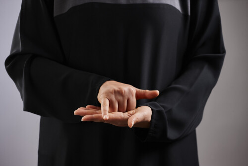 امرأة تشير بيديها بلغة الإشارات المختلفة