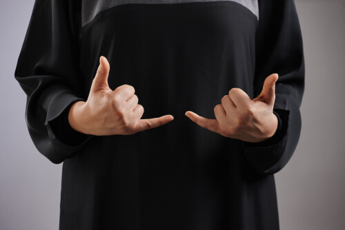 امرأة تشير بيديها بلغة الإشارات المختلفة