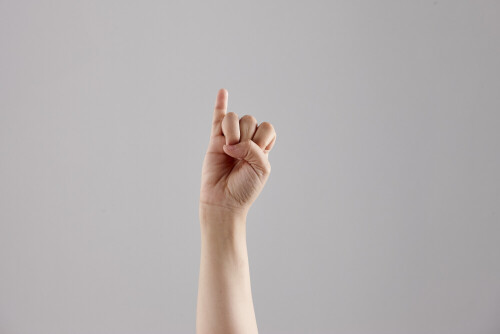 امرأة تشير بيديها بلغة الإشارات المختلفة