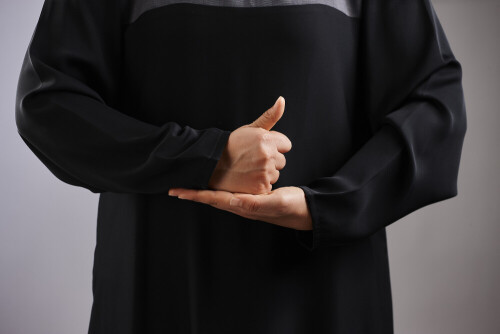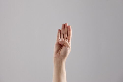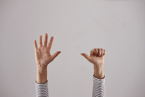 امرأة تشير بيديها بلغة الإشارات المختلفة