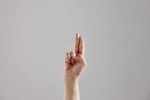 امرأة تشير بيديها بلغة الإشارات المختلفة