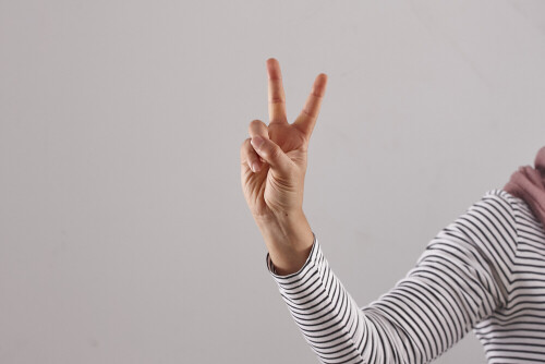 امرأة تشير بيديها بلغة الإشارات المختلفة