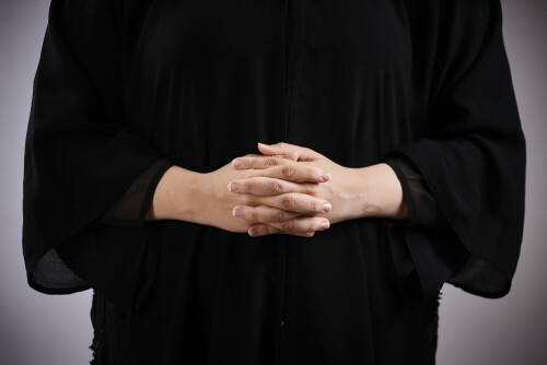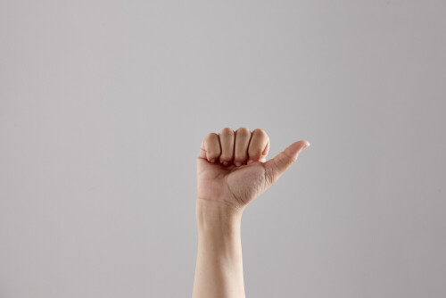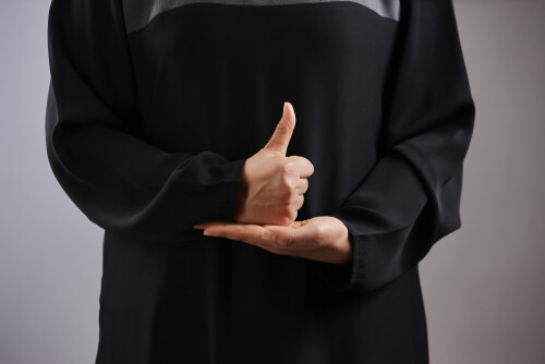 امرأة تشير بيديها بلغة الإشارات المختلفة