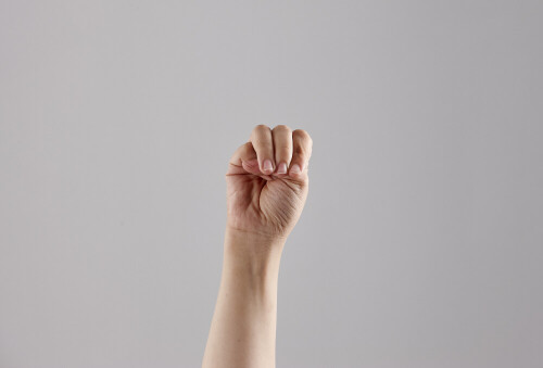 امرأة تشير بيديها بلغة الإشارات المختلفة
