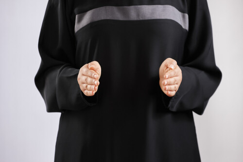 امرأة تشير بيديها بلغة الإشارات المختلفة