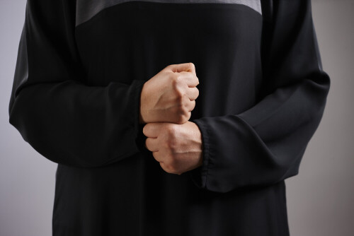 امرأة تشير بيديها بلغة الإشارات المختلفة