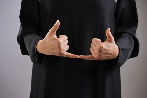 امرأة تشير بيديها بلغة الإشارات المختلفة