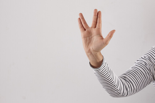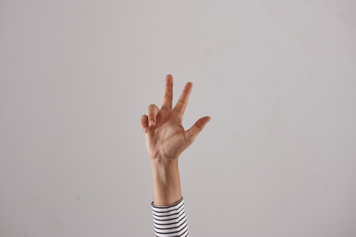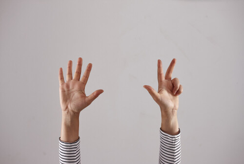 امرأة تشير بيديها بلغة الإشارات المختلفة