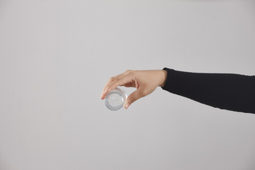 امرأة ترتدي عباءة سوداء تحمل أدوات زجاجية مختلفة في أوضاع متعددة