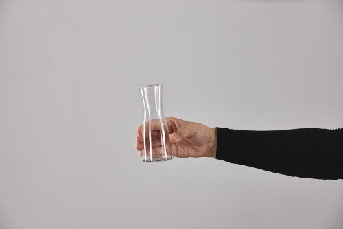 امرأة ترتدي عباءة سوداء تحمل أدوات زجاجية مختلفة في أوضاع متعددة