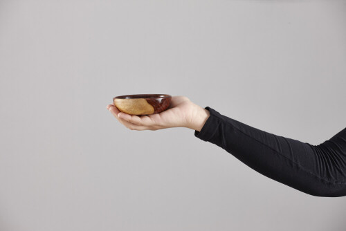 امرأة ترتدي عباءة سوداء تحمل أدوات خشبية مختلفة في أوضاع متعددة