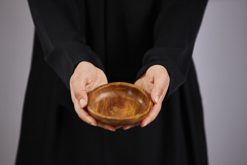 امرأة ترتدي عباءة سوداء تحمل أدوات خشبية مختلفة في أوضاع متعددة
