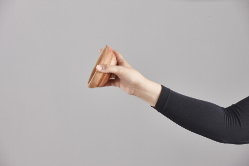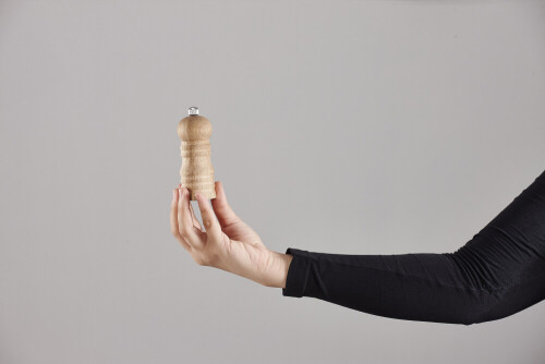 امرأة ترتدي عباءة سوداء تحمل أدوات خشبية مختلفة في أوضاع متعددة