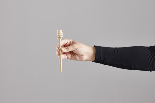 امرأة ترتدي عباءة سوداء تحمل أدوات خشبية مختلفة في أوضاع متعددة