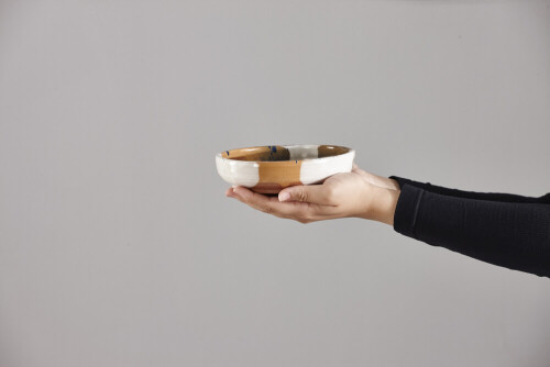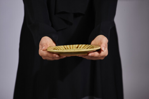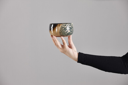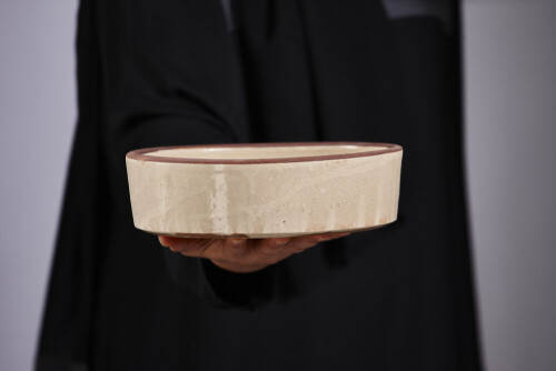 امرأة ترتدي عباءة سوداء تحمل أدوات فخارية مختلفة في أوضاع متعددة