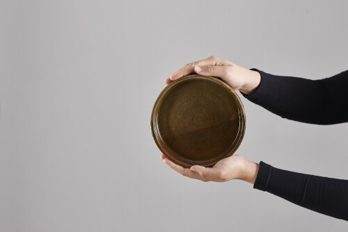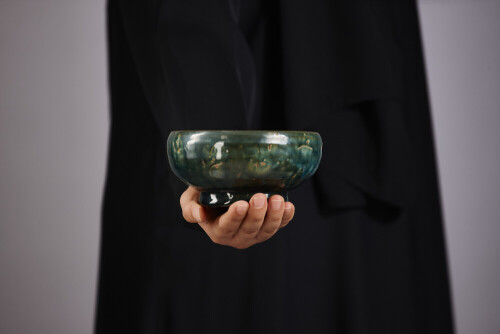 امرأة ترتدي عباءة سوداء تحمل أدوات فخارية مختلفة في أوضاع متعددة