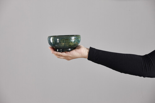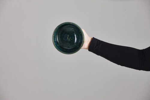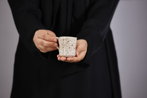 امرأة ترتدي عباءة سوداء تحمل أدوات فخارية مختلفة في أوضاع متعددة