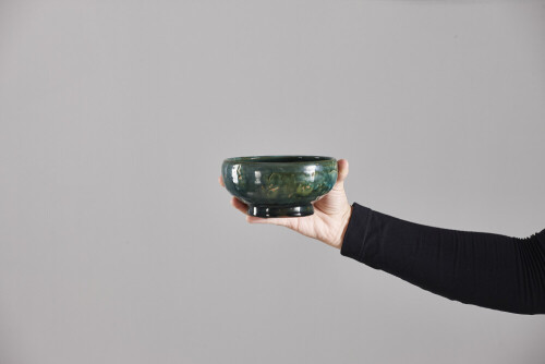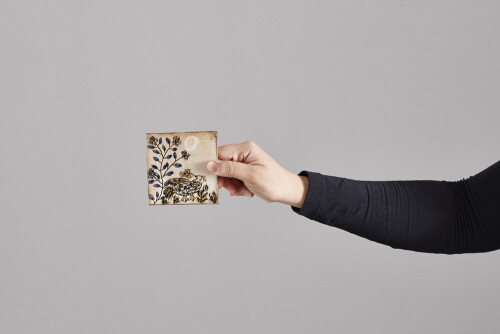 امرأة ترتدي عباءة سوداء تحمل أدوات فخارية مختلفة في أوضاع متعددة