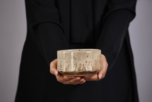 امرأة ترتدي عباءة سوداء تحمل أدوات فخارية مختلفة في أوضاع متعددة