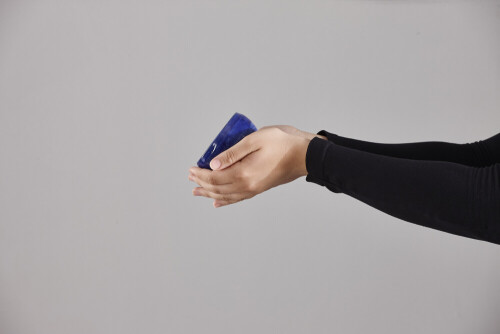 امرأة ترتدي عباءة سوداء تحمل أدوات فخارية مختلفة في أوضاع متعددة