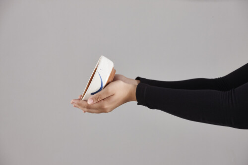 امرأة ترتدي عباءة سوداء تحمل أدوات فخارية مختلفة في أوضاع متعددة