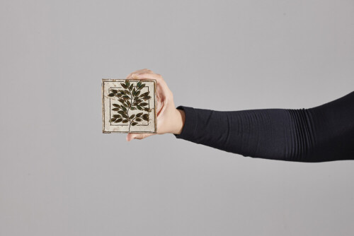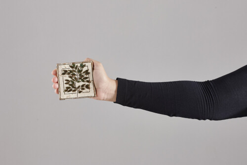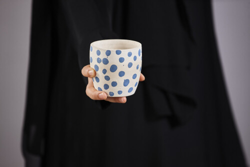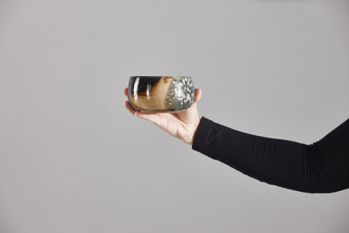 امرأة ترتدي عباءة سوداء تحمل أدوات فخارية مختلفة في أوضاع متعددة