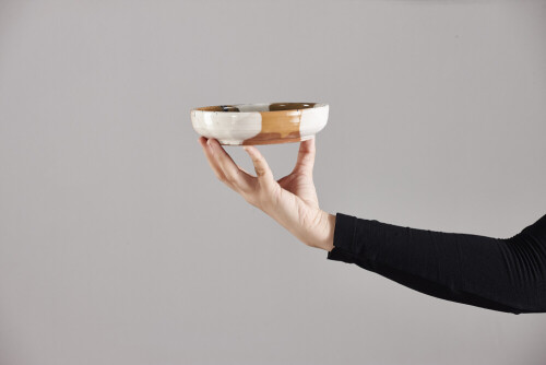 امرأة ترتدي عباءة سوداء تحمل أدوات فخارية مختلفة في أوضاع متعددة