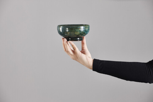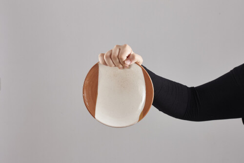 امرأة ترتدي عباءة سوداء تحمل أدوات فخارية مختلفة في أوضاع متعددة