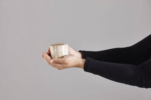 امرأة ترتدي عباءة سوداء تحمل أدوات فخارية مختلفة في أوضاع متعددة