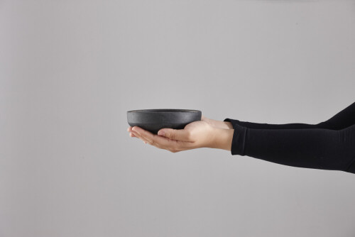 امرأة ترتدي عباءة سوداء تحمل أدوات فخارية مختلفة في أوضاع متعددة