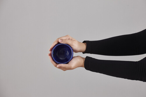 امرأة ترتدي عباءة سوداء تحمل أدوات فخارية مختلفة في أوضاع متعددة