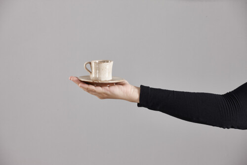 امرأة ترتدي عباءة سوداء تحمل أدوات فخارية مختلفة في أوضاع متعددة