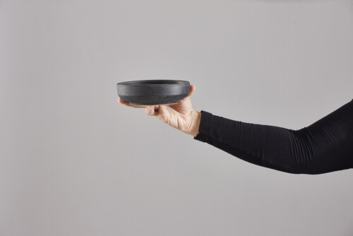 امرأة ترتدي عباءة سوداء تحمل أدوات فخارية مختلفة في أوضاع متعددة