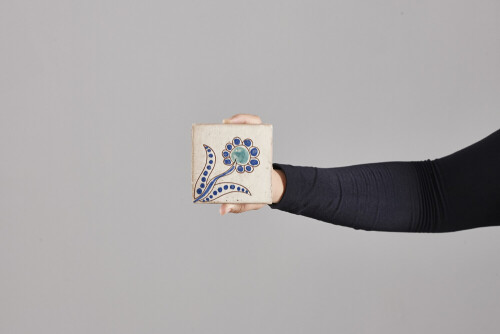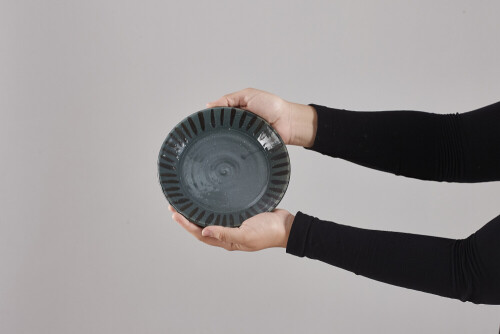 امرأة ترتدي عباءة سوداء تحمل أدوات فخارية مختلفة في أوضاع متعددة