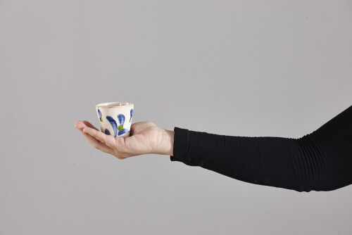 امرأة ترتدي عباءة سوداء تحمل أدوات فخارية مختلفة في أوضاع متعددة