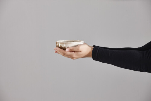 امرأة ترتدي عباءة سوداء تحمل أدوات فخارية مختلفة في أوضاع متعددة