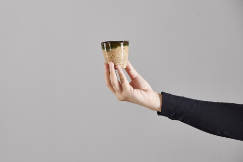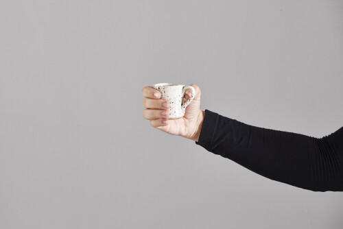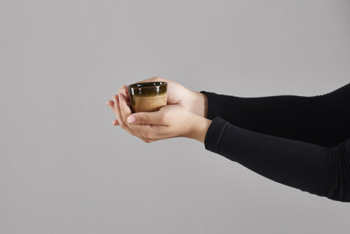 امرأة ترتدي عباءة سوداء تحمل أدوات فخارية مختلفة في أوضاع متعددة