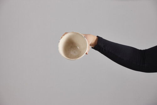 امرأة ترتدي عباءة سوداء تحمل أدوات فخارية مختلفة في أوضاع متعددة