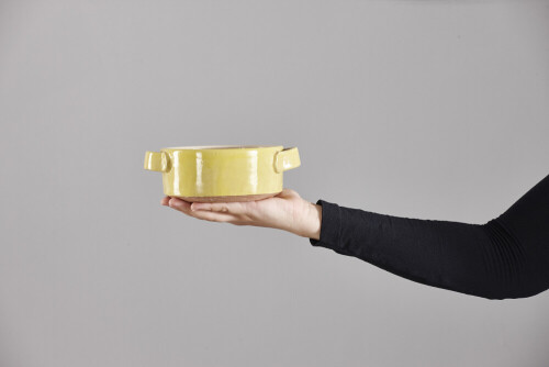 امرأة ترتدي عباءة سوداء تحمل أدوات فخارية مختلفة في أوضاع متعددة