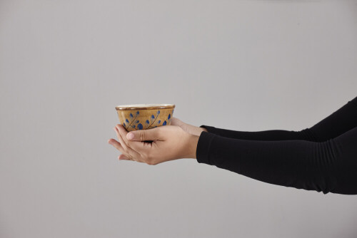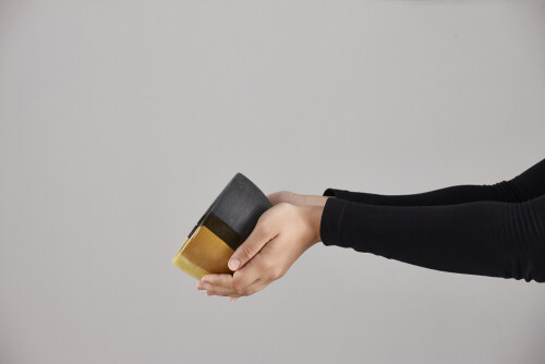 امرأة ترتدي عباءة سوداء تحمل أدوات فخارية مختلفة في أوضاع متعددة