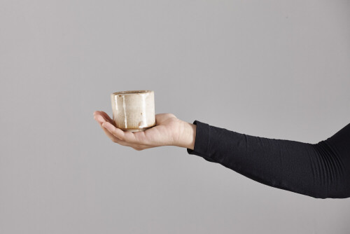 امرأة ترتدي عباءة سوداء تحمل أدوات فخارية مختلفة في أوضاع متعددة
