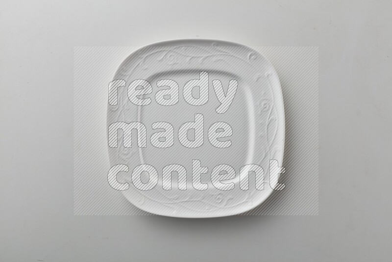 Top-view Shot Of A Squarish White Plate On White Background