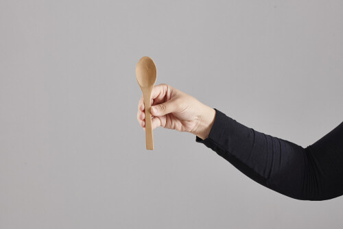 A woman in black abaya holding different wooden essentials in different positions