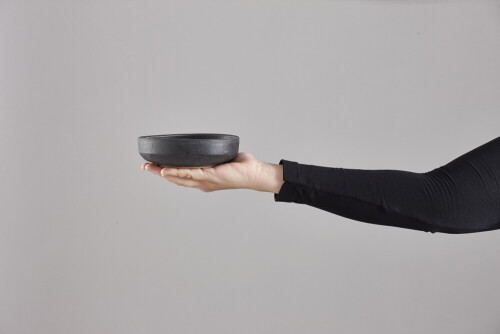 A woman in black abaya holding different pottery essentials in different positions