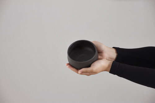 A woman in black abaya holding different pottery essentials in different positions