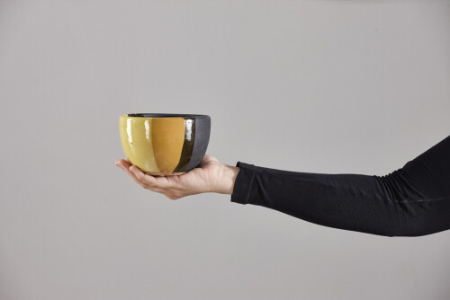A woman in black abaya holding different pottery essentials in different positions