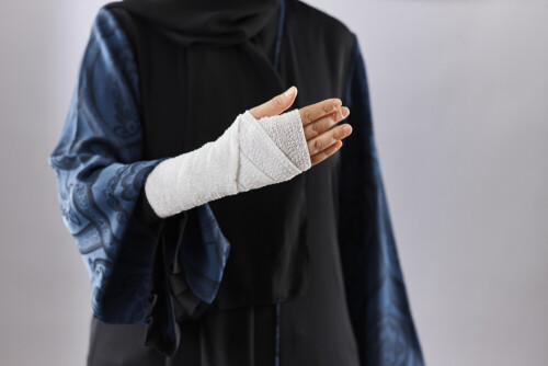 Woman with bandaged hand